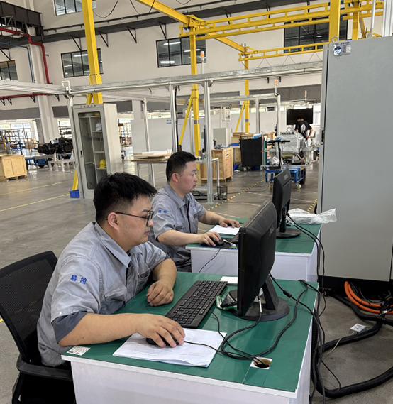 走进车间,扑面而来的不仅是设备运转散发的热浪,更是那份令人振奋的拼搏气息。巨大的行车吊臂沉稳移动,精准地将部件送达工位;自动化生产线高速运转,发出节奏鲜明的轰鸣;气动工具的“哒哒”声、金属部件碰撞的“铿锵”声、调试设备的“嘀嘀”声……各种声响交织融合,汇成一首高亢激昂的生产进行曲。这声音,是责任在催征,是承诺在回响。视线所及,处处是紧张忙碌的身影。
